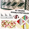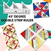 The 45° Double-Strip ruler is one of a range of Strip Rulers that are designed to make cutting Half-Square-Triangles, Quarter-Square-Triangles, 60° Triangles, Trapezoids and more from 2½" wide strips quickly and easily!Use the straight side of this double strip ruler to cut 1 ½" and 2 ½" strips or use the pre-cuts that are on the market. Sew these strips together to create a 4 ½" wide strip set. Turn-a-Round the ruler to cut multiple shapes that finish 4". Multiple layers can be cut at the same time.